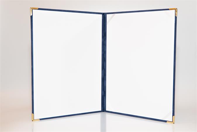 Oklevéltartó, A4, exkluzív, plüss, 4 fém sarokkal, kék
