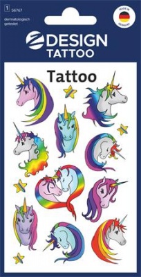 Matrica, tetoválás, 1 ív, 76x120 mm, AVERY ZWECKFORM, "Z-Design No.56767", unikornisok