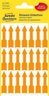 Jelölőnyíl, 39x9 mm, AVERY ZWECKFORM, neon narancs, 63 etikett/csomag